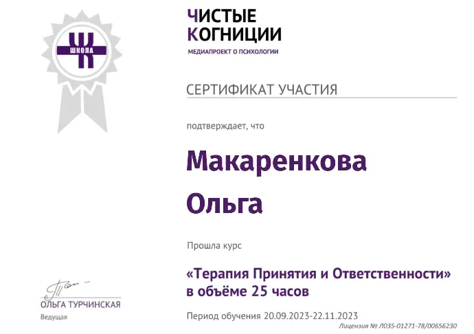 - Ольга Турчинская (клинический психолог, АСТ-терапевт, член Association for Contextual Behavioral Science)