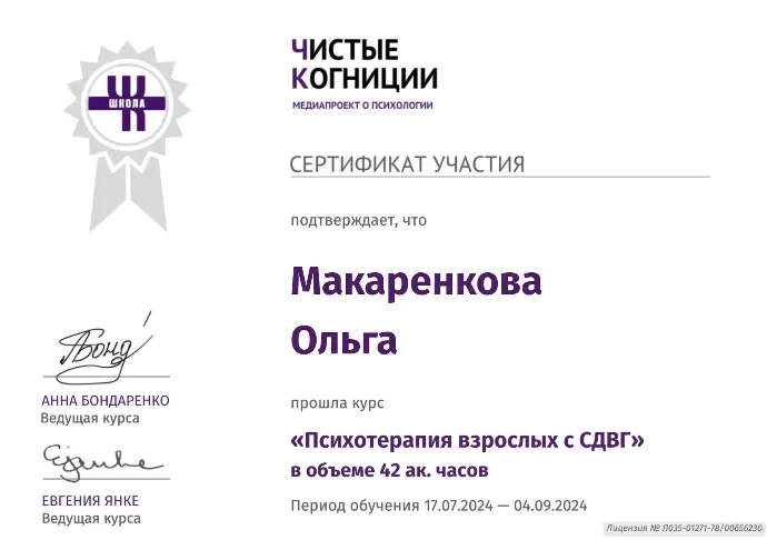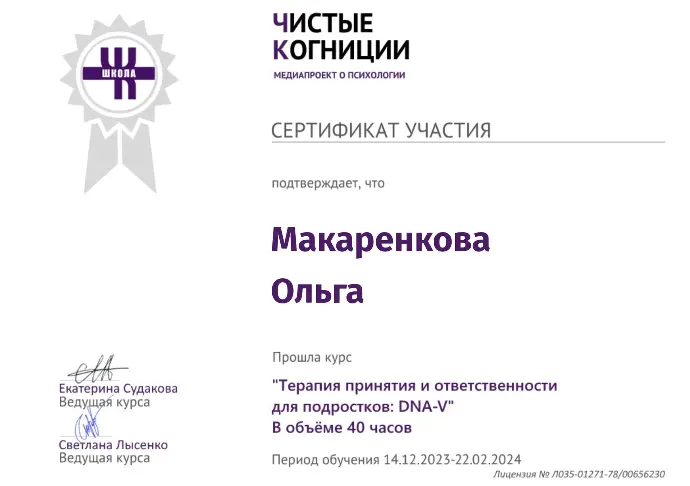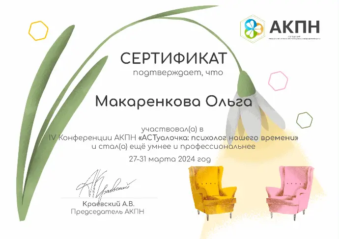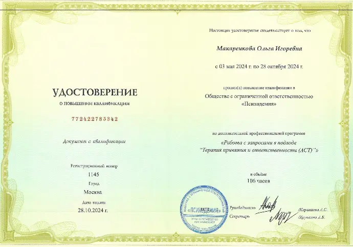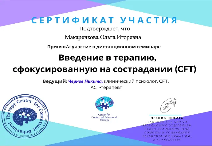 Состою в Ассоциации специалистов в сфере контекстуально-поведенческой науки