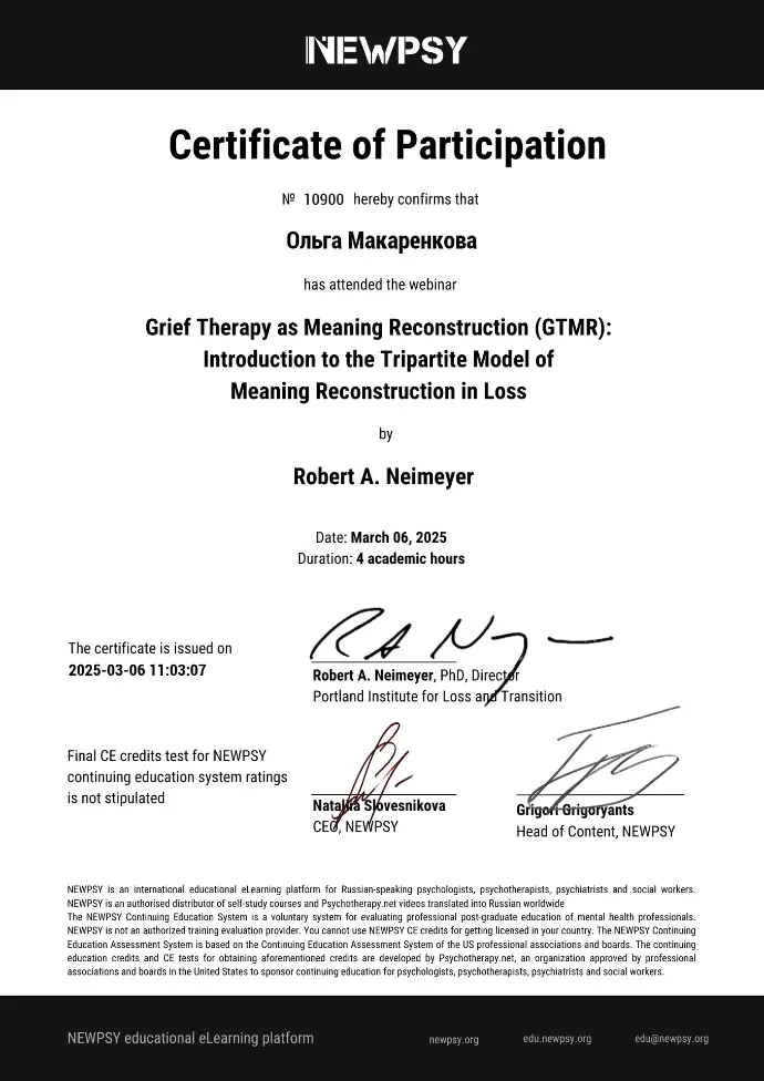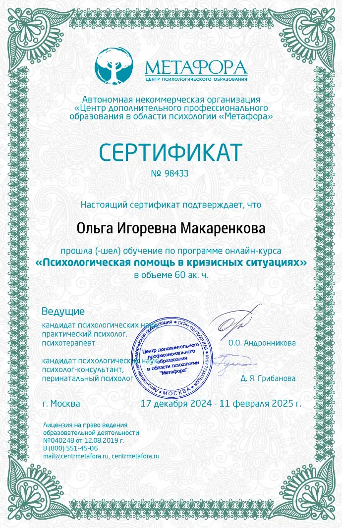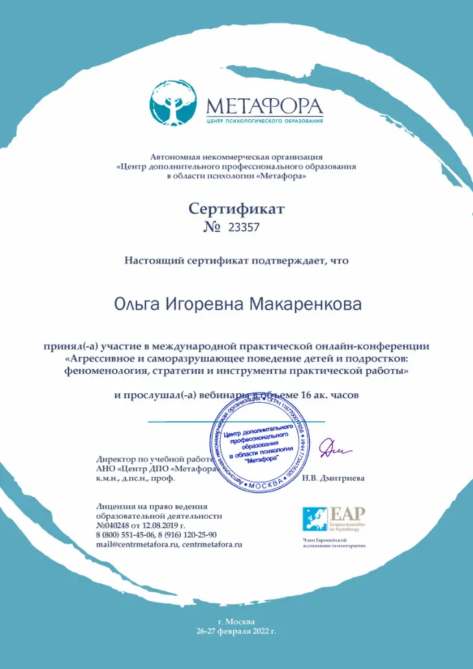 Кроме этого, я прохожу личную психотерапию, регулярно участвую в группах интервизии и супервизии.